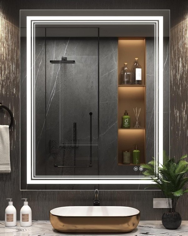 Conexión Directa: Equipado con una fuente de 12V que se conecta directamente a 220V, nuestro espejo debe prever la instalación eléctrica a una tecla de encendido y apagado, permitiendo el control de iluminación en la pared, igual que la luz principal del baño.