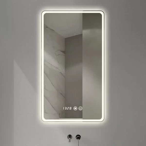 ESPEJO DE LED sin MARCO con DESEMPAÑANTE Y RELOJ